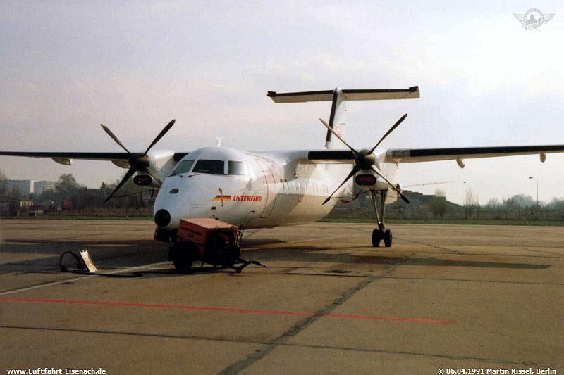 Wahrscheinlich führte der letzte nichtkommerzielle Flug der Interflug am 04.05.1991 um 08:05 Uhr nach Innsbruck, als die Dash-8 an den Eigentümer zurückgegeben wurde.