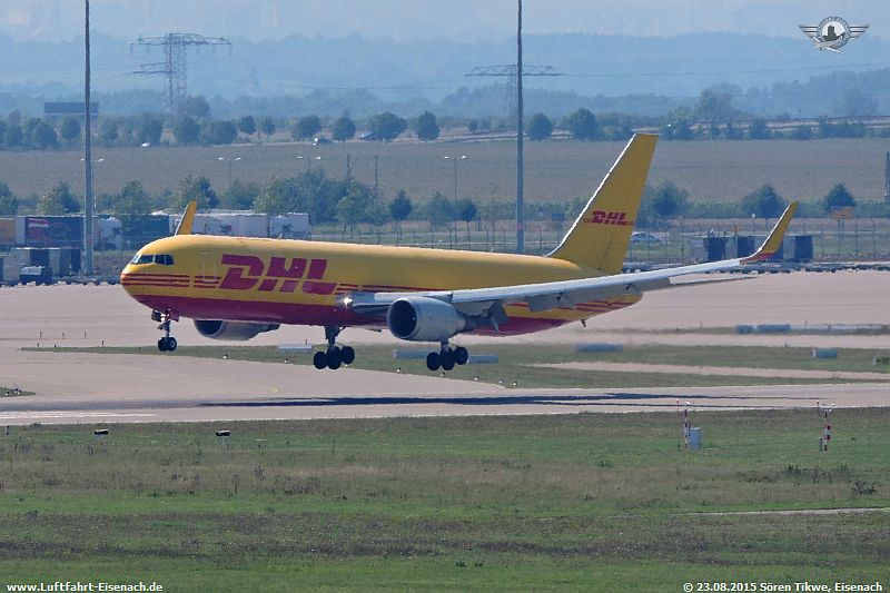 G-DHLG ist eine Boeing 767-300ERF und gehört der britischen DHL-Airlines. Diese Maschine ist kein Umbau aus einer gebrauchten Passagiermaschine, sondern wurde bereits als Frachter gebaut und 2009 ausgeliefert.