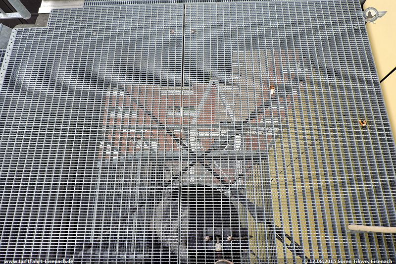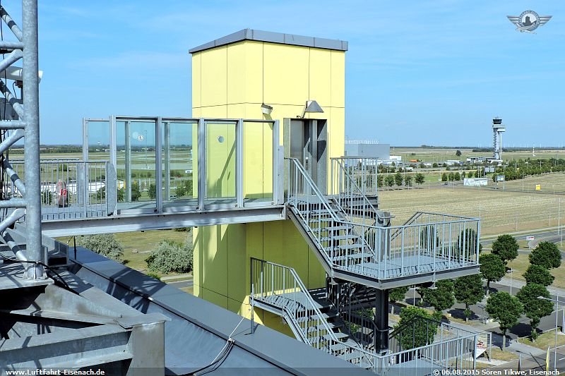 Ich machte mich dann alsbald zur Aussichtsplatform, die sich auf dem alten Tower befindet. Interessanterweise wurde das Gebäude aus Teilen der Fertigteilhausbaureihe WBS-70 gefertigt.