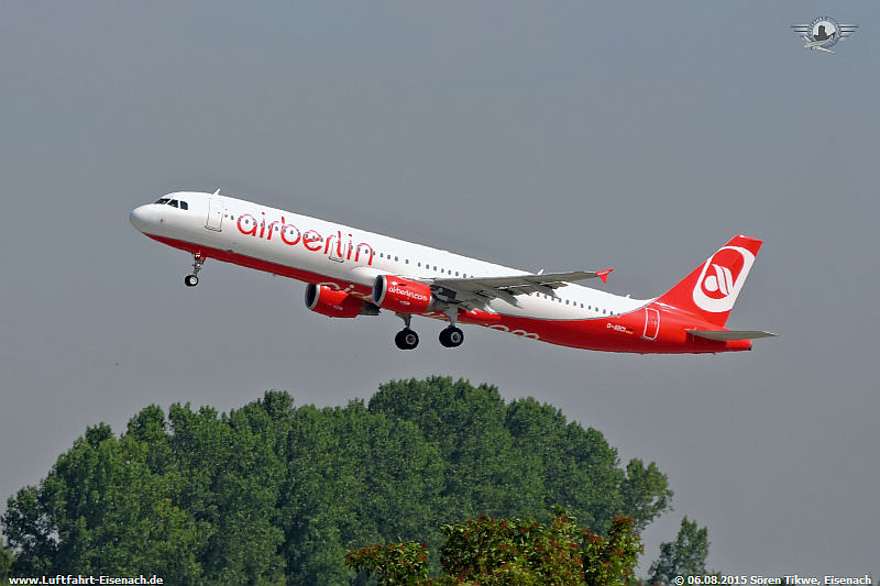 Hier startet Air Berlin mit seiner ABCI, ein Airbus A321-211, in Richtung irgendeiner Touristendestination.