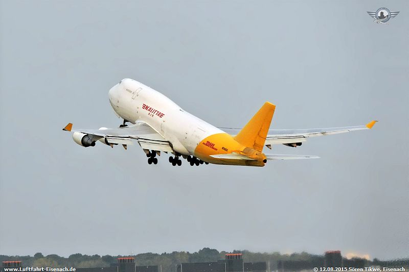 Anders, als die eben gezeigte N403KZ ist die N743CK, eine Boeing 747-446(BCF) im früheren Leben eine Passagiermaschine im Dienst von Japan Airlines gewesen. Das Flugzeug trägt eine teilweise DHL-Lackierung.