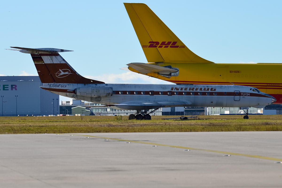Kommt endlich Bewegung in das zweite Leben der DDR-SCF? Seit Jahren bewegt sich etwas in Sachen TU-134. Zumindest wurde sie jetzt in den Südbereich (Leipzig-Halle-Airport) vor dem Ruslan-Salis-Hangar geschoben. Von hier kann aber nur spekuliert werden, warum sie versetzt worden ist. Verschrottet wird die Maschine wohl kaum, da sie meines Wissens unter Denkmalschutz steht.
