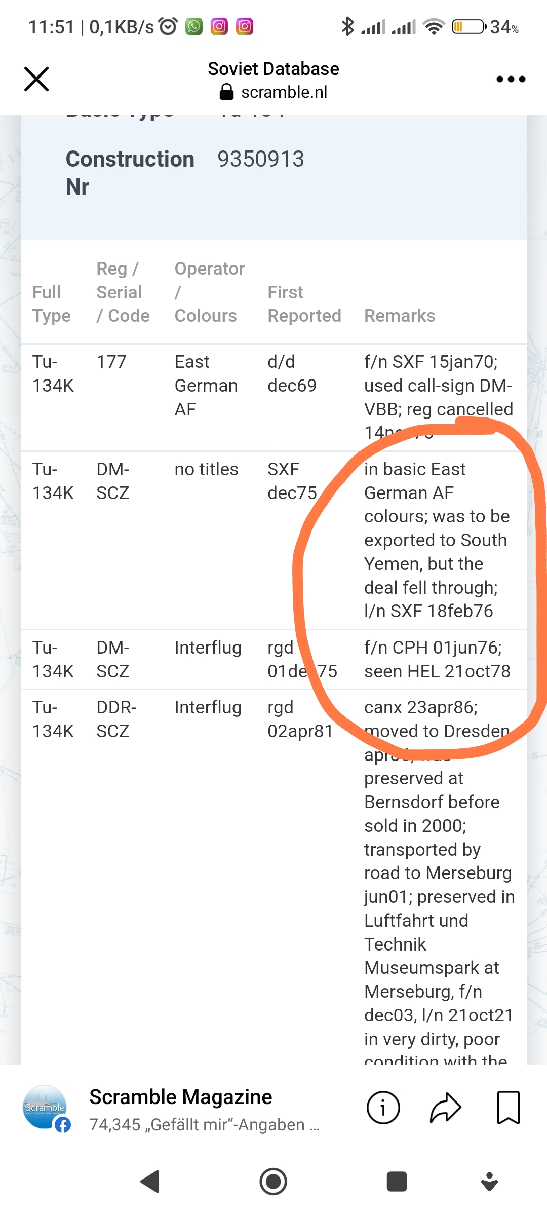 Die FWD IL-14T ist abtransportiert nach Polen. Zielort unbekannt. Die TU-134N DDR-SCZ IF soll wohl auch dort hin gehen.
