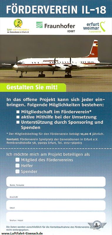 Im Bezug auf die IL-18 hat sich wirklich etwas getan. Nach längerer Planung hat man jetzt einen Förderverein ins Leben gerufen. Beim 2. Erfurter Flughafenlauf am 29.08.2015 werden auch die ersten Flyer dazu ausliegen.