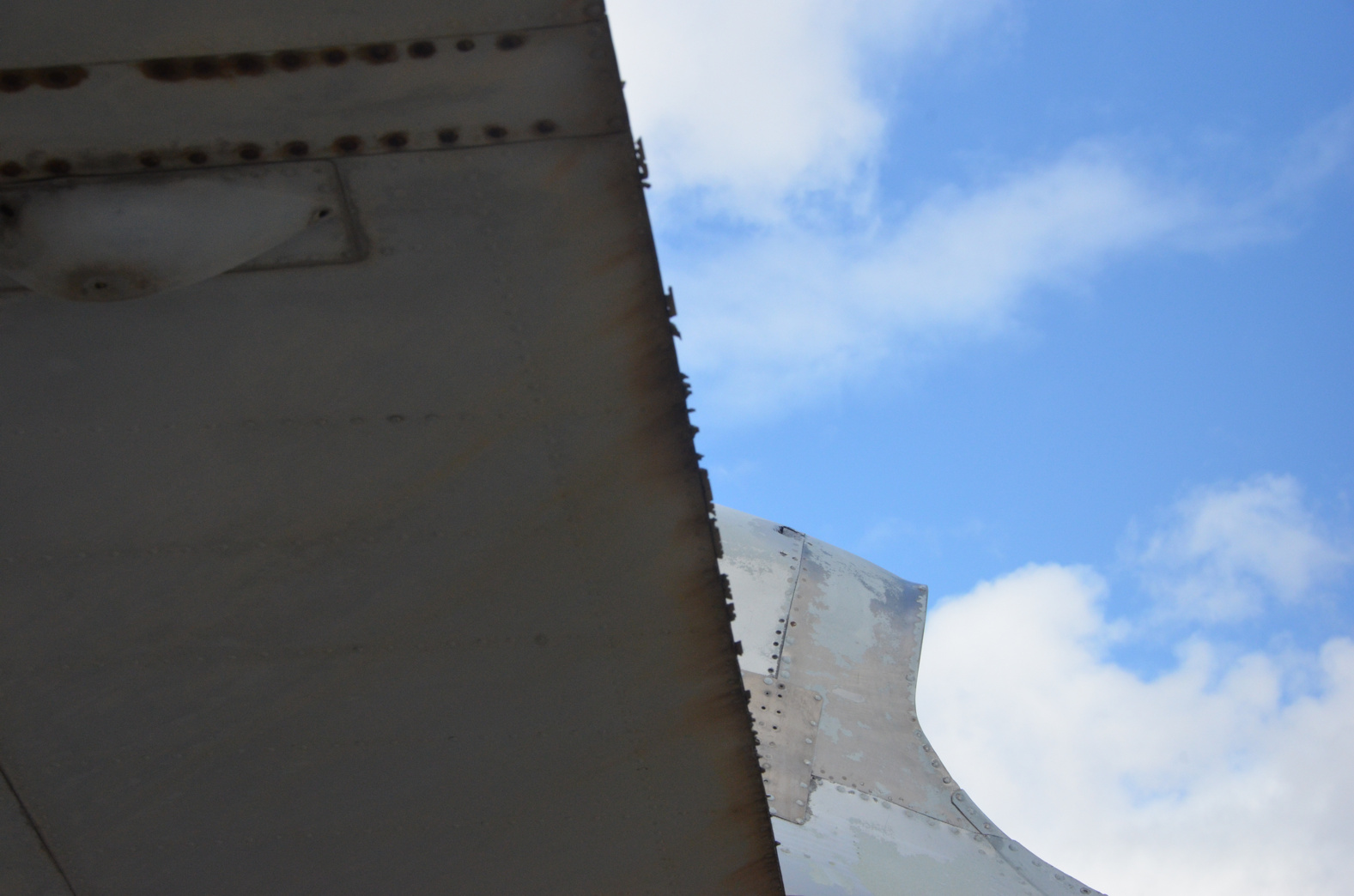 Für mich sehen die Detailschäden (ausgerissene Nieten, hochgebogenes Beplankungsblech) so aus, als hätte da jemand mit scharfem Wasserstrahl auf das Flugzeug gehalten. Flughafen-Feuerwehr beim Training?