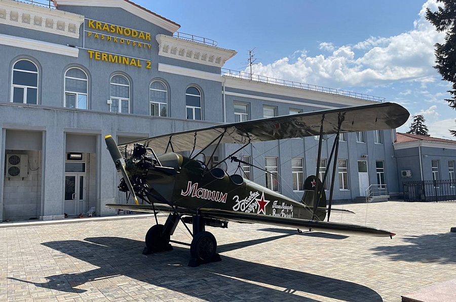Die legendäre Po-2 ist nach ihrer Reko in den Flughafens Krasnodar zurückgekehrt. Nach einer fast zweijährigen Pause nahm sie wieder ihren gewohnten Platz auf der Landseite des Flughafens in der Nähe des Berschanskaja-Denkmals ein,