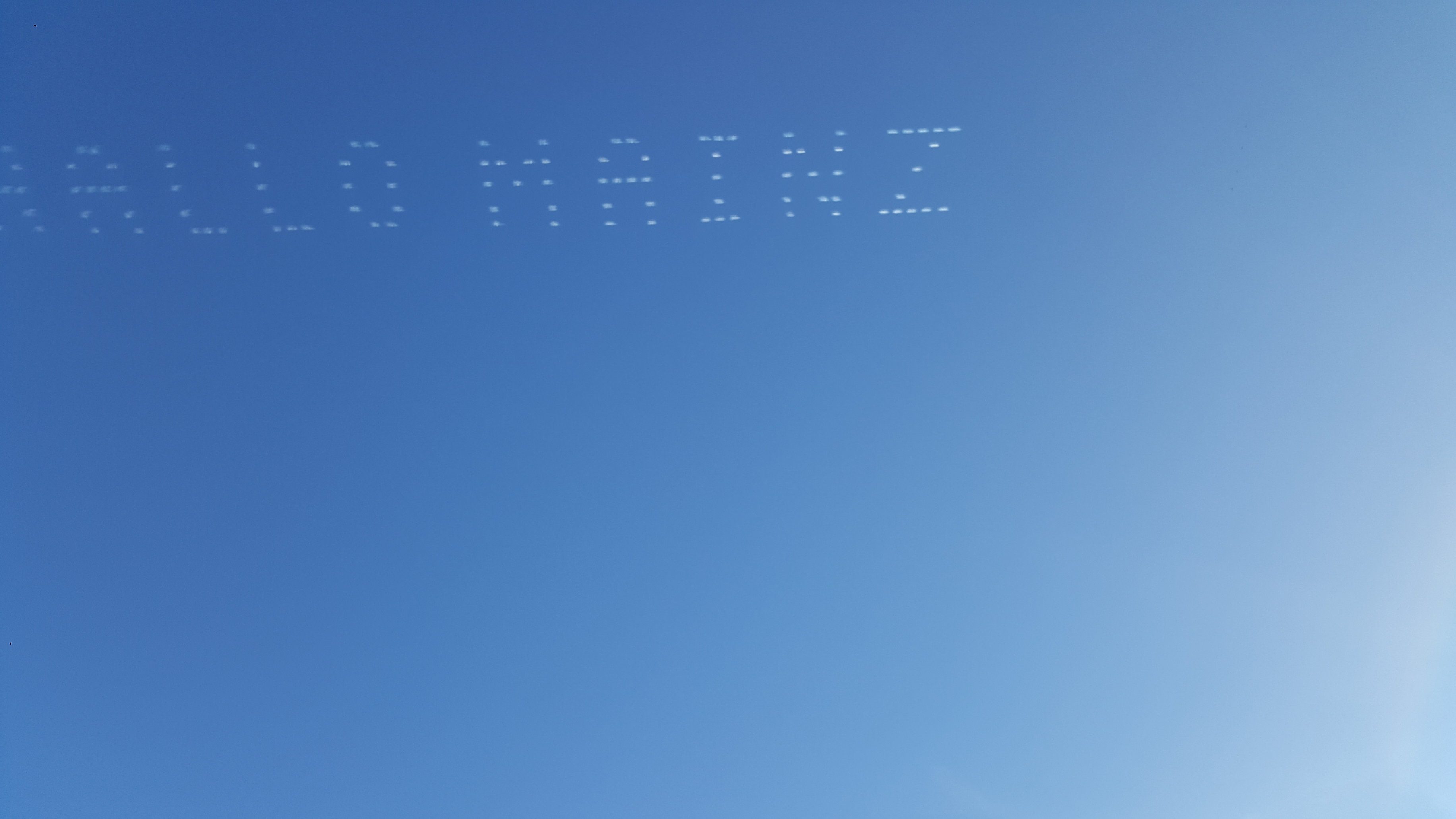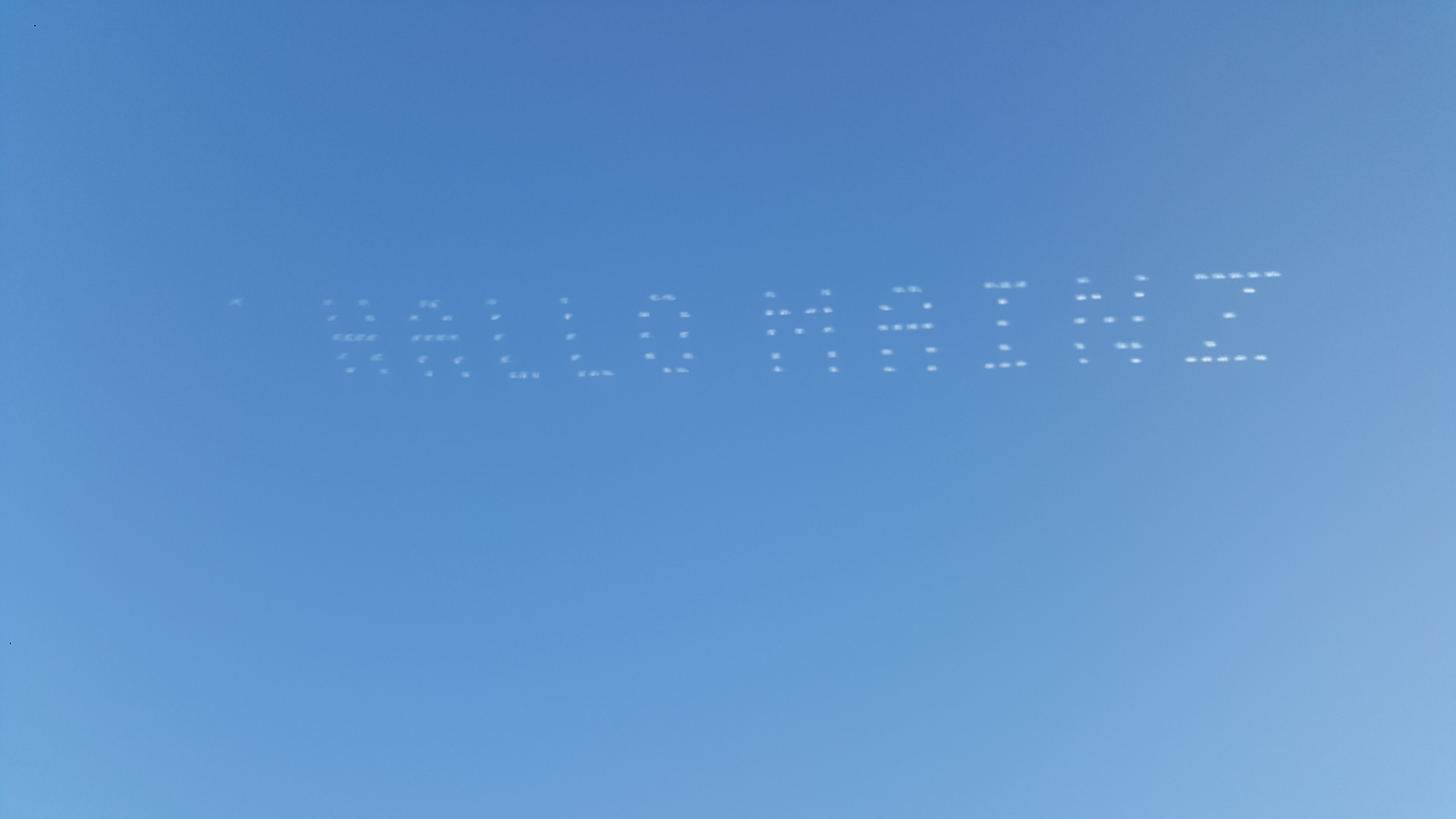 Es kann sein das der Text noch weiter ging. Aber mehr war durch die tief stehende Sonne und Flugrichtung Ost-West nicht erkennbar.