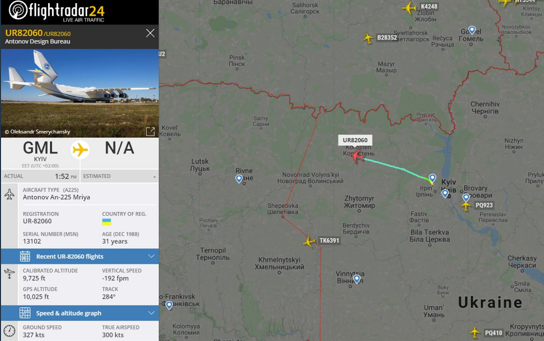 Die An-225 Mirya mal wieder im Visier: Nach https://www.flightradar24.com/data/aircraft/ur-82060