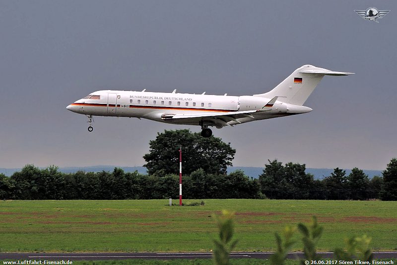 Die 14+01, eine Global 5000 der Flugbereitschaft der Bundeswehr-Luftwaffe kam aus Berlin-Tegel nach Erfurt und machte 2 Low Aproach, um dann weiter zum Flughafen Köln-Bonn zu fliegen, wo das Flugzeug stationiert ist.