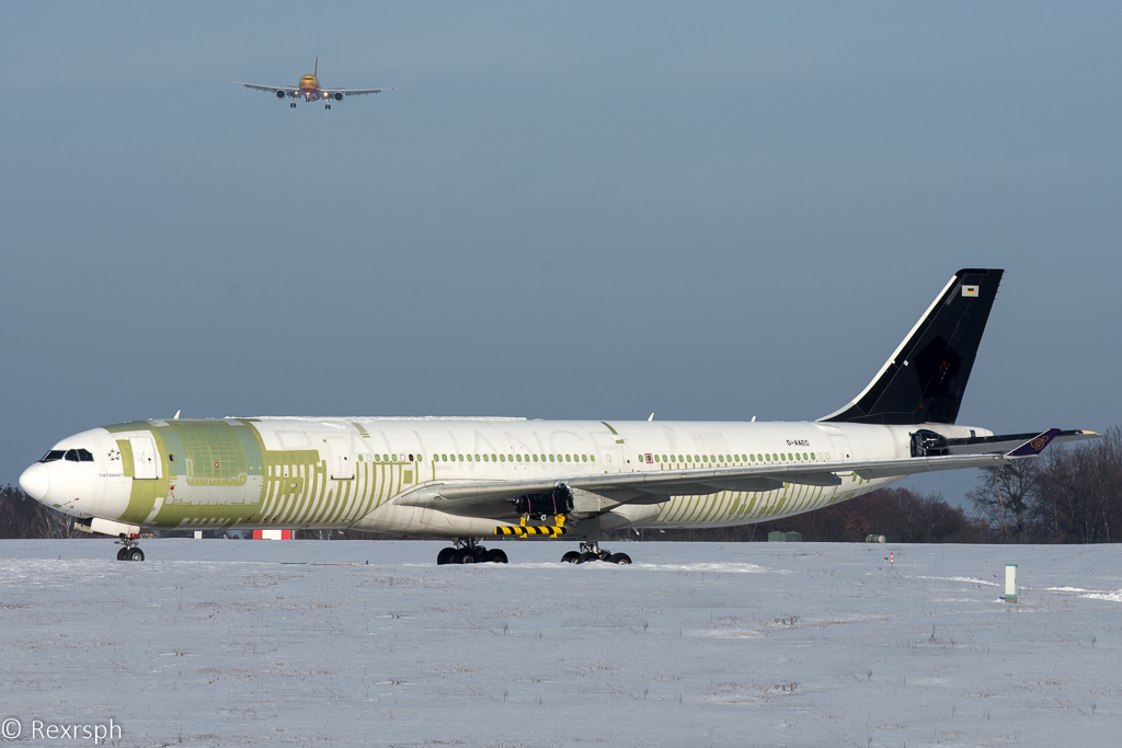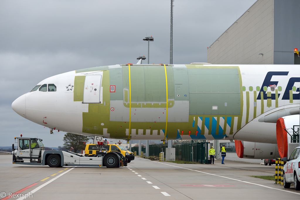 erst einmal ein vorher/nachher Bild von der zur Zeit anwesenden EI-HEA Air Hong Kong Airbus A330-322(F). Diese kam aus Hongkong zu einem Triebwerkswechsel nach Dresden.