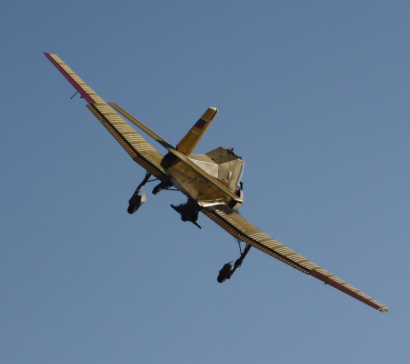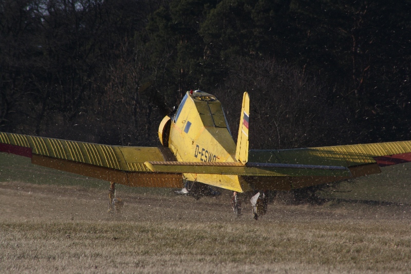 Die Hummel war gerade zum AFP zur Beladung geflogen, da kam diese BO in Arbeitsflughöhe über das Feld gedüst, auf dem wir uns postiert hatten. Zette hatte an alles gedacht, sogar an das Pausenprogramm