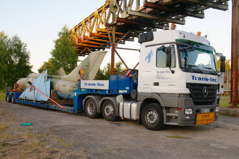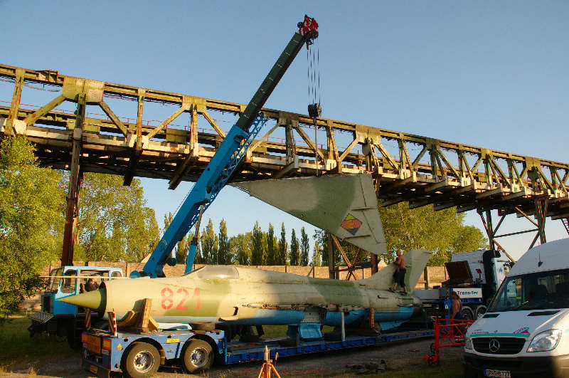 Die MiG-21 ist angekommen und hat im Restaurationsbereich des Museums ihren vorläufgen Platz gefunden.