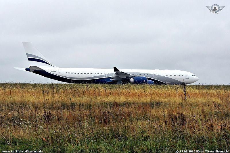 Hier nun der eigentliche Grund meiner Anreise: der Airbus A340-500 mit dem Kennzeichen CS-TFX der Fluggesellschaft Hi-Flex aus Portugal.