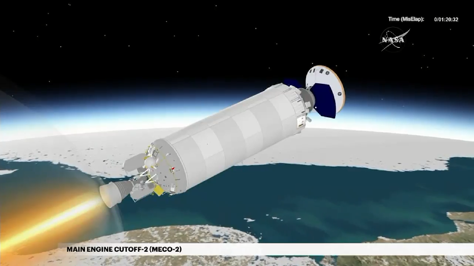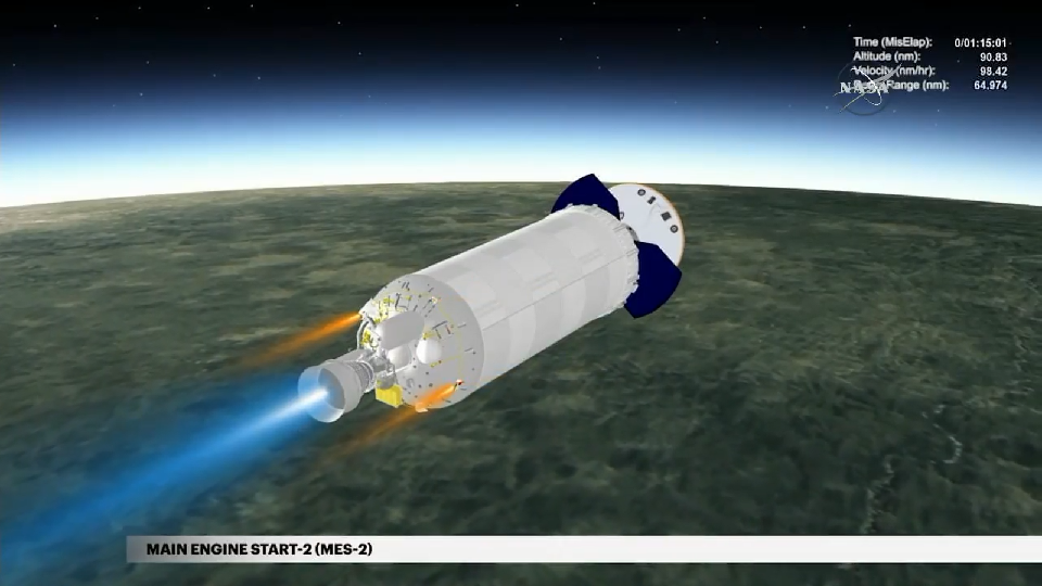 Die Nutzlastverkleidung (Fairing) ist abgesprengt, in Kürze folgt der erste Cut- off der Centaur: