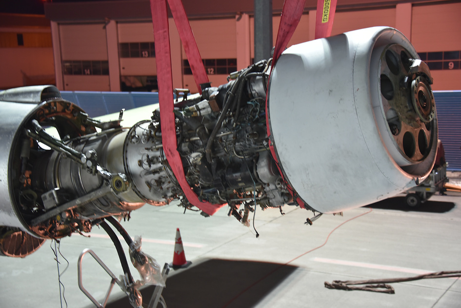(34) Die Technik zum Ausbau der Triebwerke ist vorgefahren
