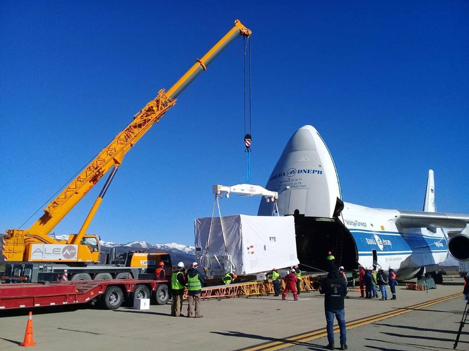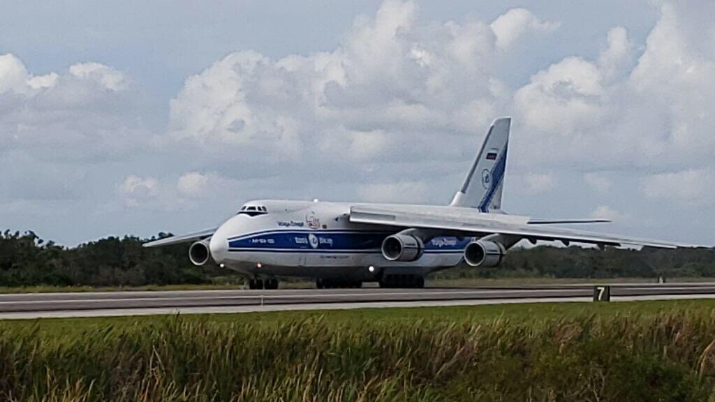 Aufgeteilt auf 3 Maschinen AN-124 ABC wurden Satellit, Solaranlagen und Bodenunterstützungs-Ausrüstung in Cayenne angeliefert
