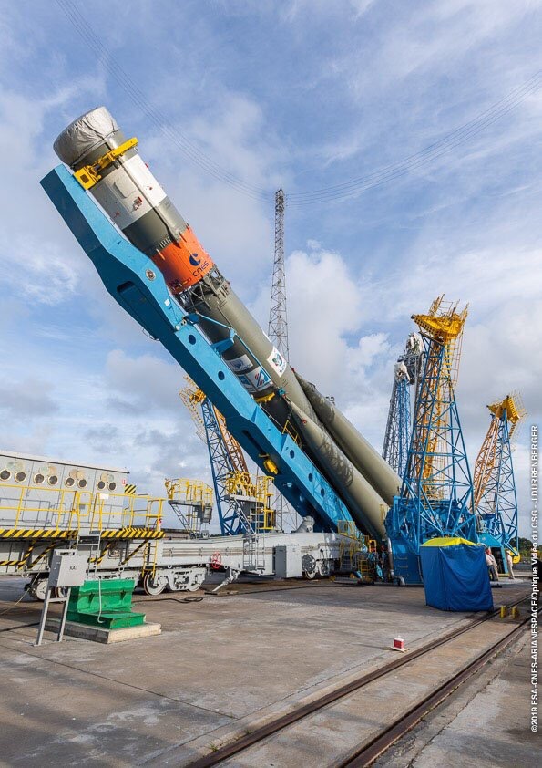 Nach Roskosmos wurde heute der Träger "Sojus-ST/B" auf dem Launchpad in die "Vertikale" gebracht: