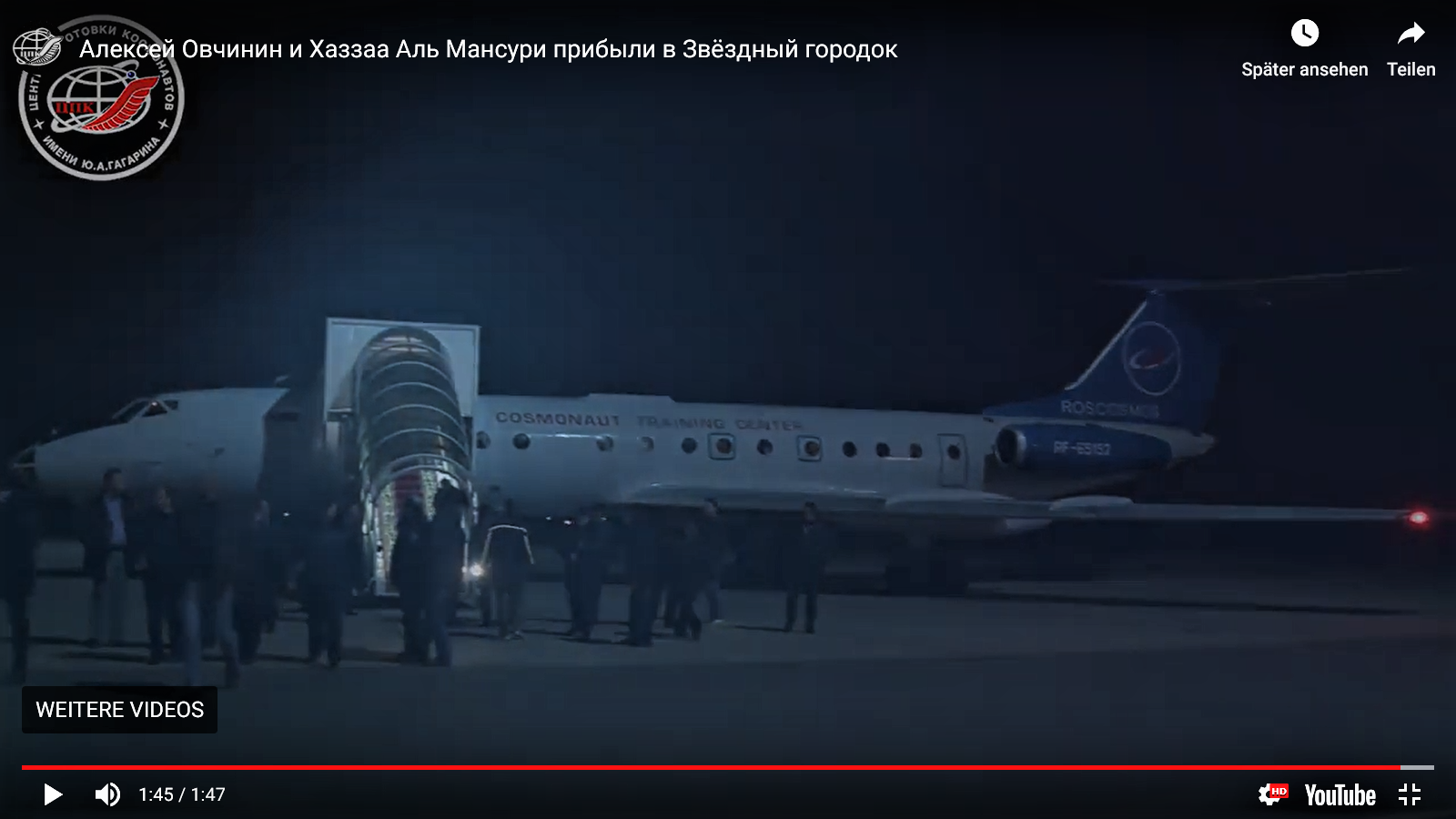 Alexei Owtschinin und Hazzaa Al Mansuri wurden nach http://gctc.ru/main.php?id=4778 heute noch in das Sternenstädtchen geflogen, um sich der üblichen medizinischen Untersuchung zu unterziehen und ein Programm mit wissenschaftlichen Experimenten und Reha-Maßnahmen nach dem Flug durchzuführen.