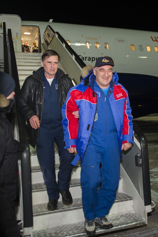 währenddem Alexander Skwortzow schon Donnerstag Nacht mit der "Juri Gagarin" auf dem FH Tschkalow b. Moskau herzlich empfangen wurde.