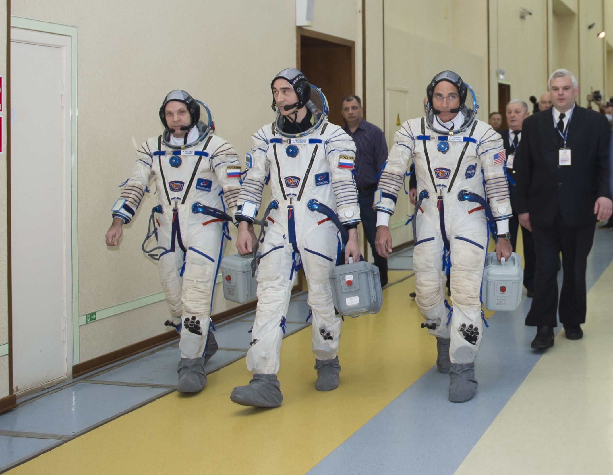 Im Zeitplan liegend hier die neue Hauptcrew, die Roskosmos Kosmonauten Anatoly Ivanishin, Ivan Wagner und NASA-Astronaut Christopher Cassidy auf dem Weg zum Flug-Prüfungstraining Q.: https://www.roscosmos.ru/28175/