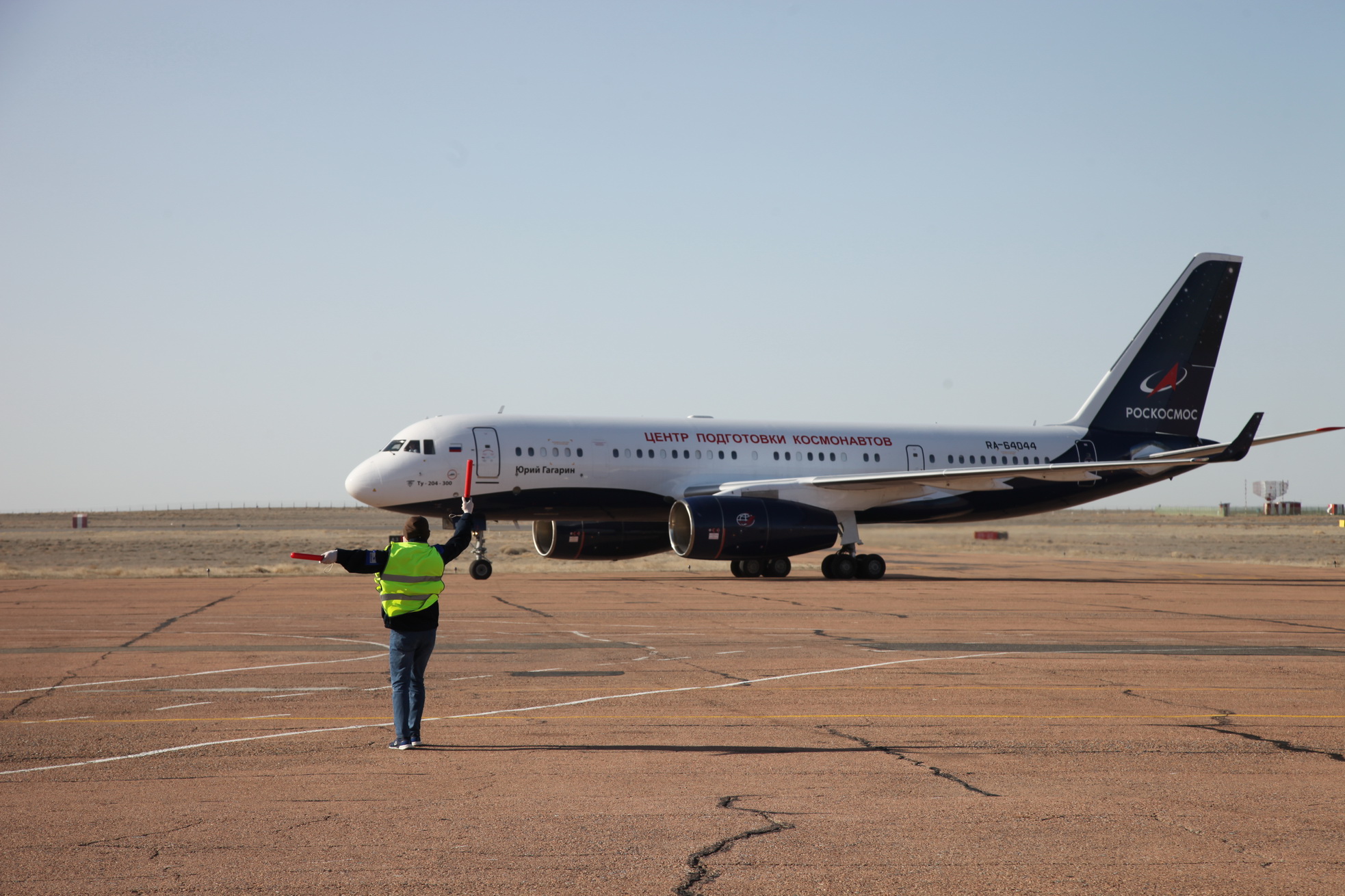 Die TU-204 300 "Juri Gagarin" ist schon da in Karaganda mit dem NASA - "Lande-Photografen" Bill Ingalls
