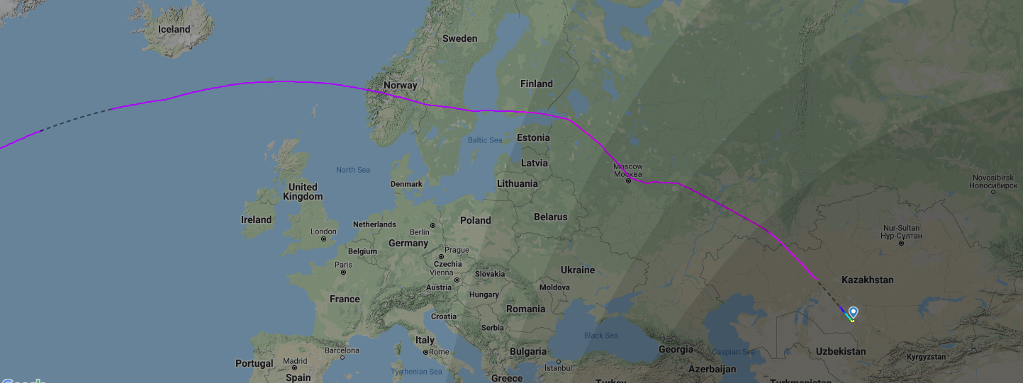 Unsere bekannte Nasa "Gulfstream V" N95NA ist gestern schon in Kysylorda gelandet (Houston via Goose Bay)