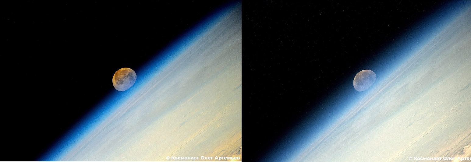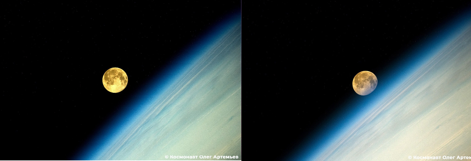 "Der Supermond" mit dem Objektiv vom Kollegen Oleg Artemjew aus der ISS gesehen ... wie er untergeht.