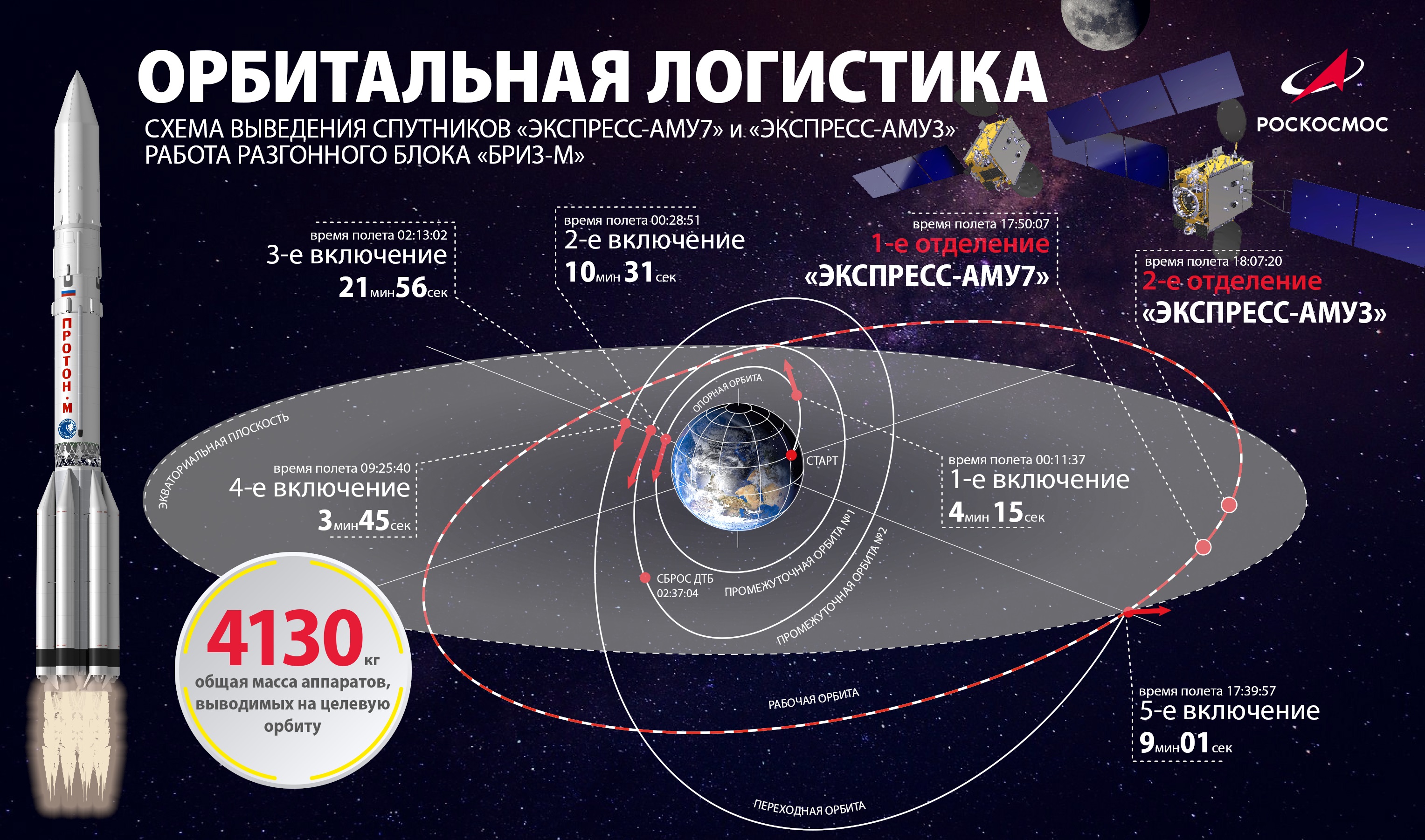 Im Schema die Konfiguration der Proton und das (nicht einfache) Bahnschema Q.: https://www.roscosmos.ru/33604/