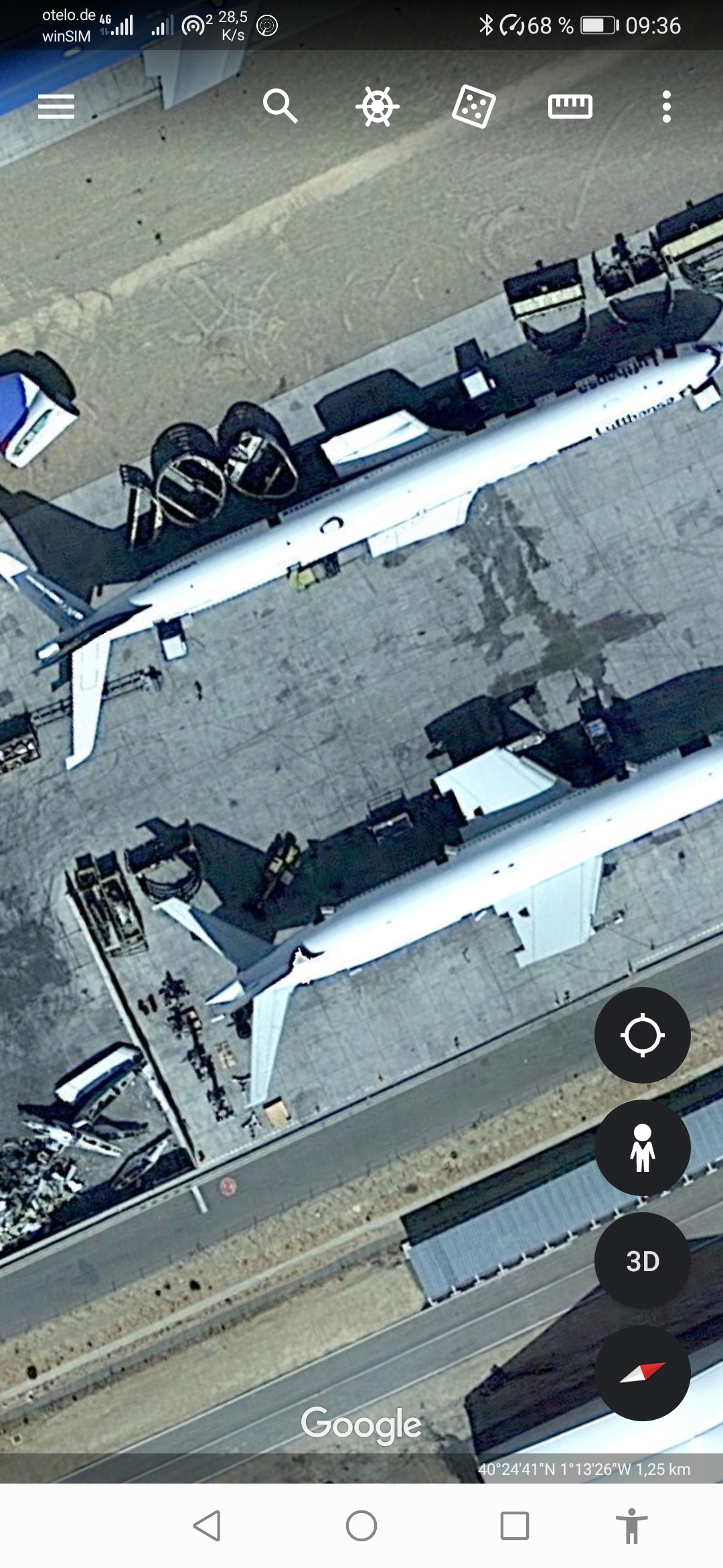 Der Blick mit Google-Earth über den Flugzeug-Friedhof Teruel in Spanien führte dazu, das ich Atmungsprobleme bekam. Die zerlegen doch tatsãchlich bereits den ersten Airbus A340-600 der Lufthansa. Das Flugzeug ist nicht sehr alt. Ob das so viel Geld bringt? Die Triebwerke sind speziell für die Typen A340-500 und A340-600 adaptiert, wo es nicht sooo viele Exemplare gibt und wo nur eine geringe Nachfrage besteht. Ich verstehe nicht, wie man derart junge Flugzeuge verschrottet.