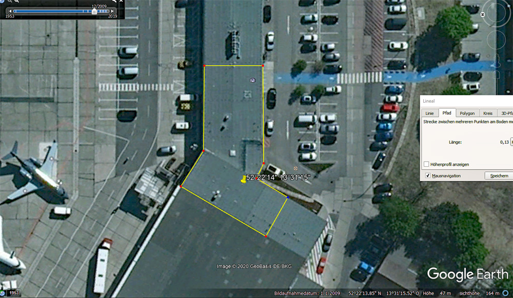 Die Koordinate des Gebäudes ist N52°22'14" E13°31'15".