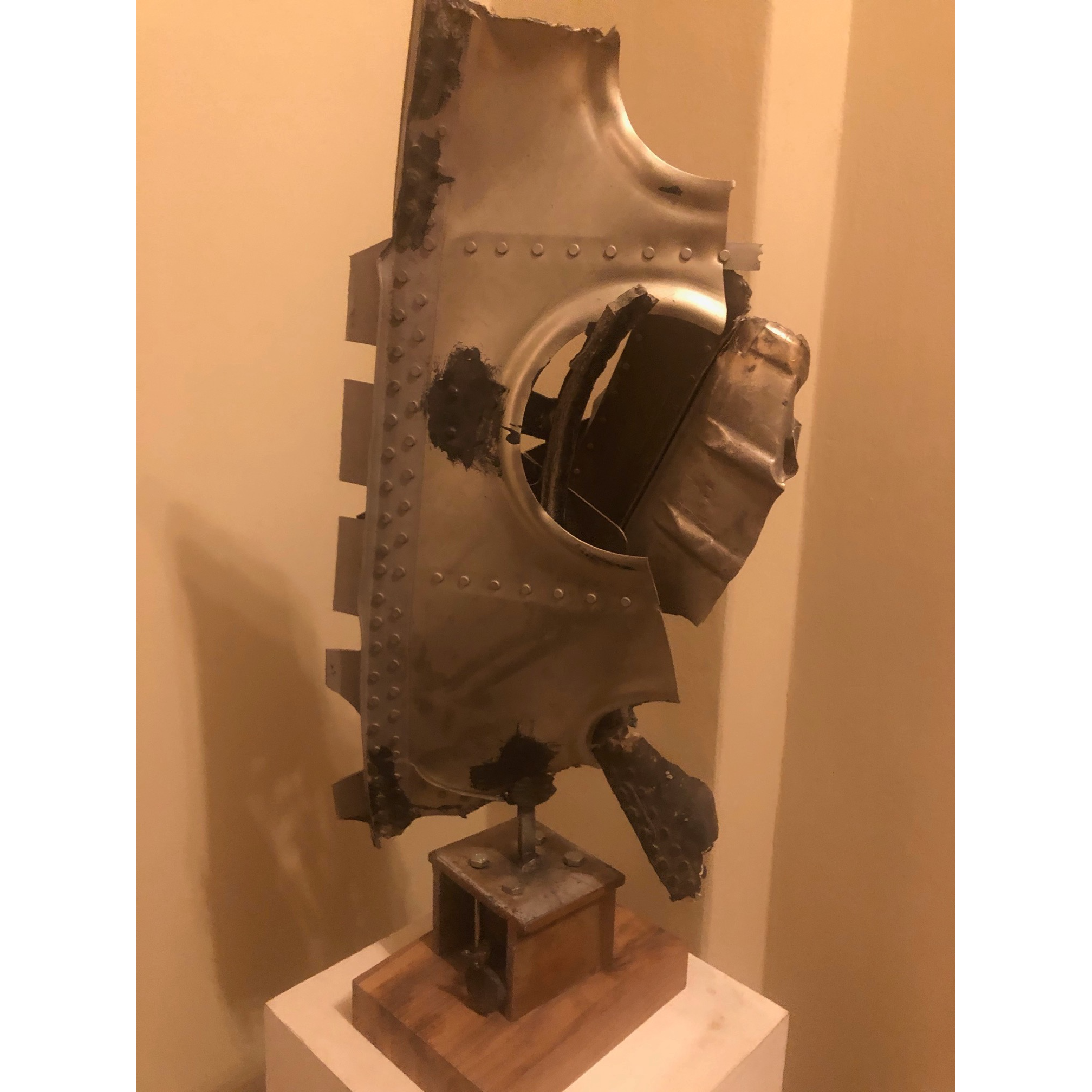 Ein damals junger Westberliner Student hat Ende 1986/Anfang 1987 auf einem Feld neben einer Straße in der Nähe von Berlin-Schönefeld Flugzeugtrümmerteile gesehen. Er hat mit seinem Auto angehalten und einige Teile davon mitgenommen, diese in seinem PkW versteckt und nach Westberlin gebracht. Inzwischen ist der Student zum anerkannten Professor geworden... Er schicke mir jetzt ein Foto einer Skulptur. Diese hat vor einigen Jahren ein Künstler aus den 1986/87 geborgenen Trümmerteilen gefertigt.