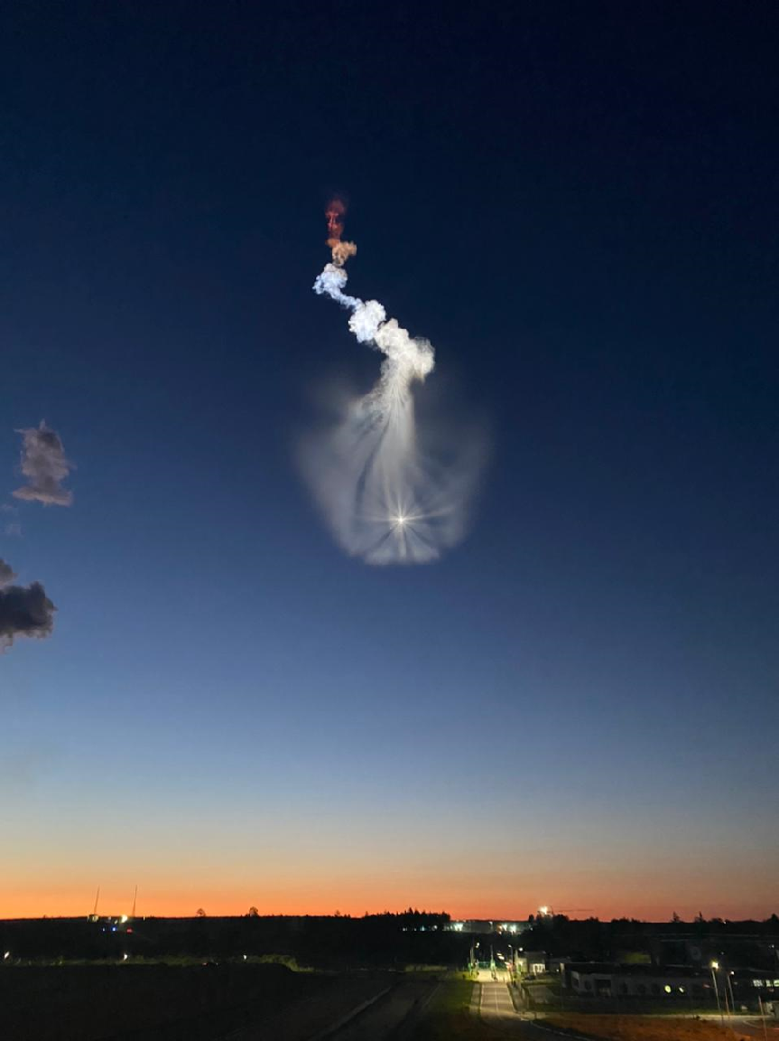 Ein phantastischer Anblick - nach dem Sojus-Start ST33 in den frühen Sonnenaufgang (und dieser erklärt auch das Farbspiel in der Aufstiegsbahn):