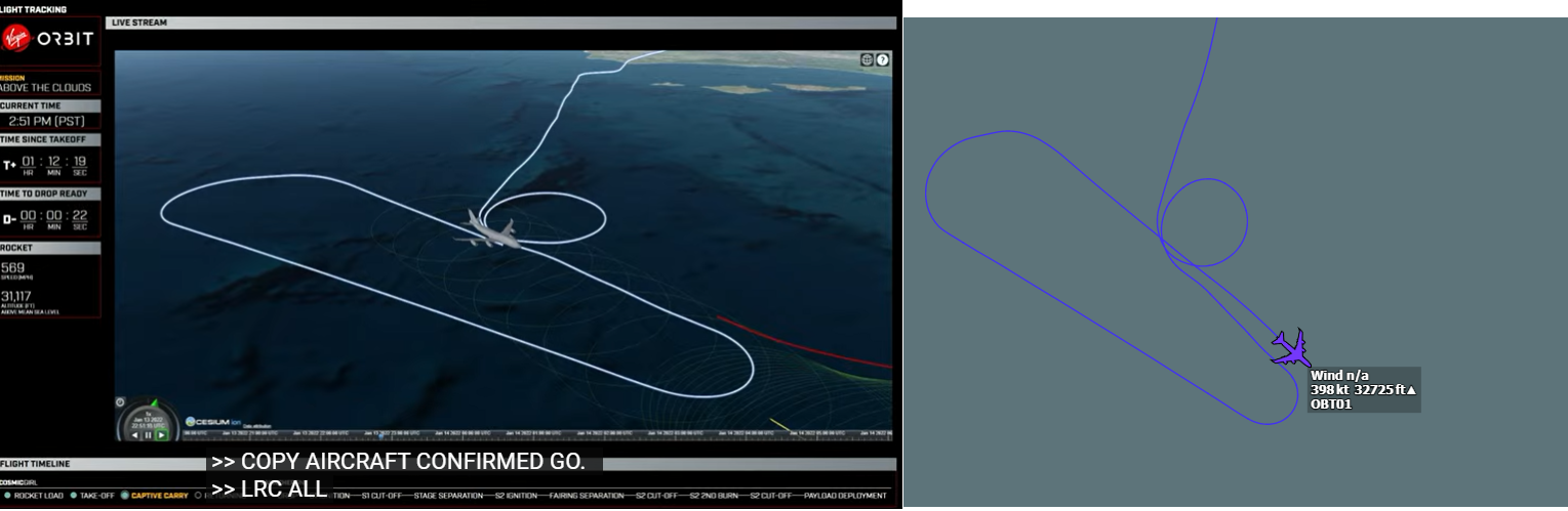 Das Abheben des Trägerflugzeugs ist zwischen 22:00 Uhr und 0:30 Uhr (am 13.Jan.) MEZ geplant - etwa eine Stunde nach dem TakeOff soll dann die Rakete in der Zone zum Start abgeworfen werden.