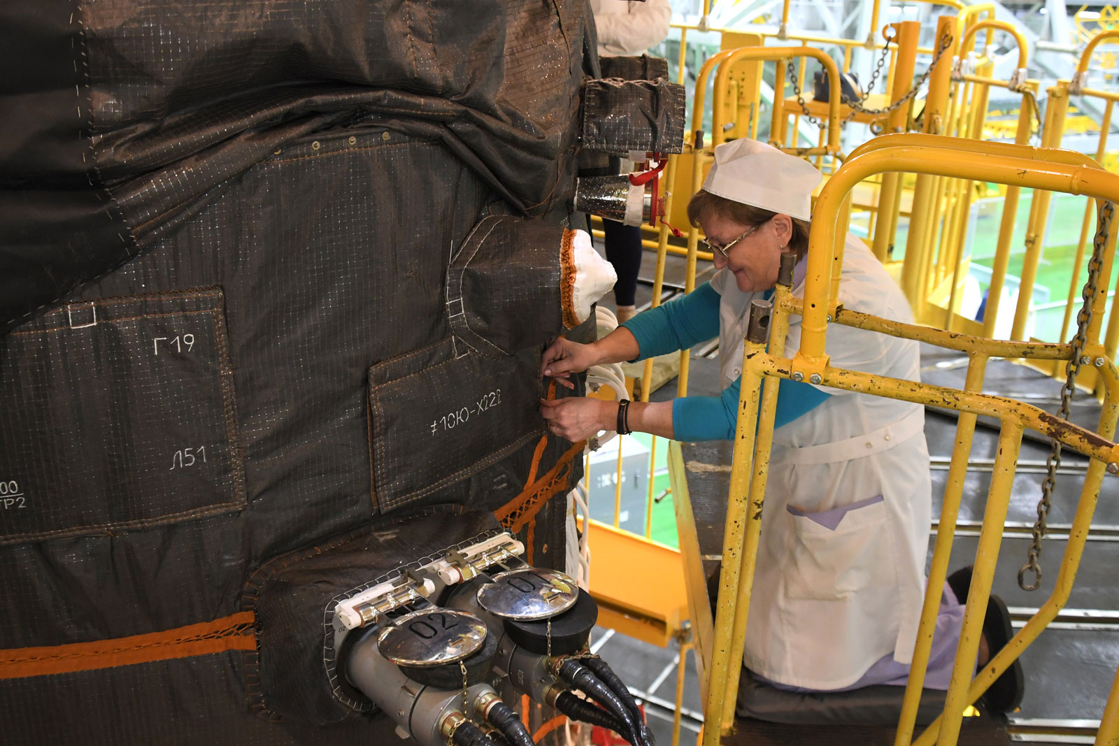 Dazu gehört die Installation der Vakuum-Wärmeisolierung (die bei der Vakuumprüfung entfernt werden muss, um an die Klappen e.t.c. zu kommen) und die Überprüfung der Dichtheit der Docking-Einheit, sowie das Beladen und die Vervollständigung der zusätzlichen Ladungsstauung.