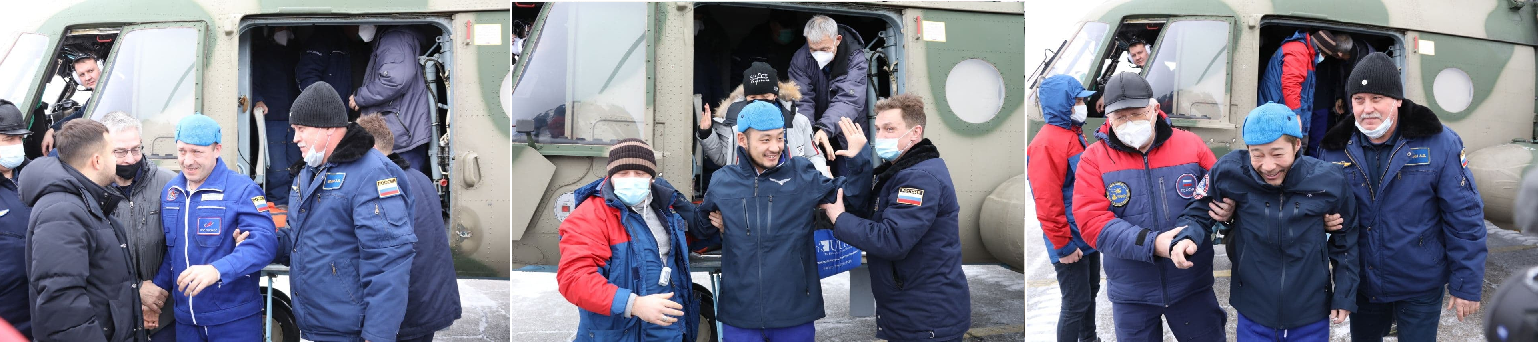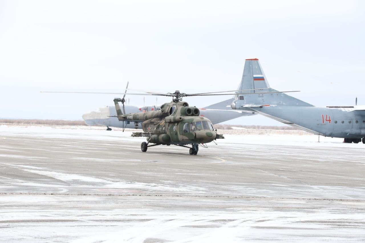 "Die Mi-8MTV5-1 des Zentralen Militärbezirks lieferte die Besatzung des Schiffes #SoyuzMS20 vom Landepunkt in Zhezkazgan ab. Der Flug fand bei schwierigen Wetterbedingungen statt"