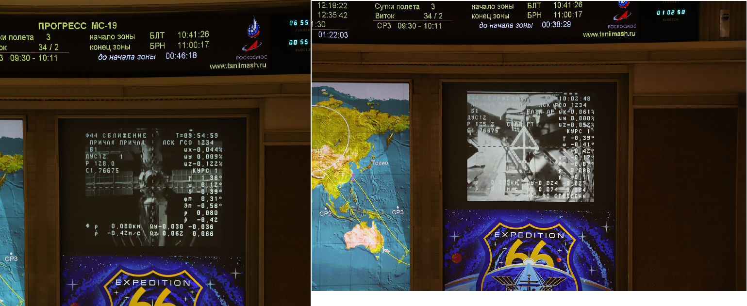 RSC Energia brachte aus dem Flugleitzentrum ZUP/MCC Moskau Bilder der automatischen Kopplung: https://www.energia.ru/ru/news/news-202 ... -17_1.html
