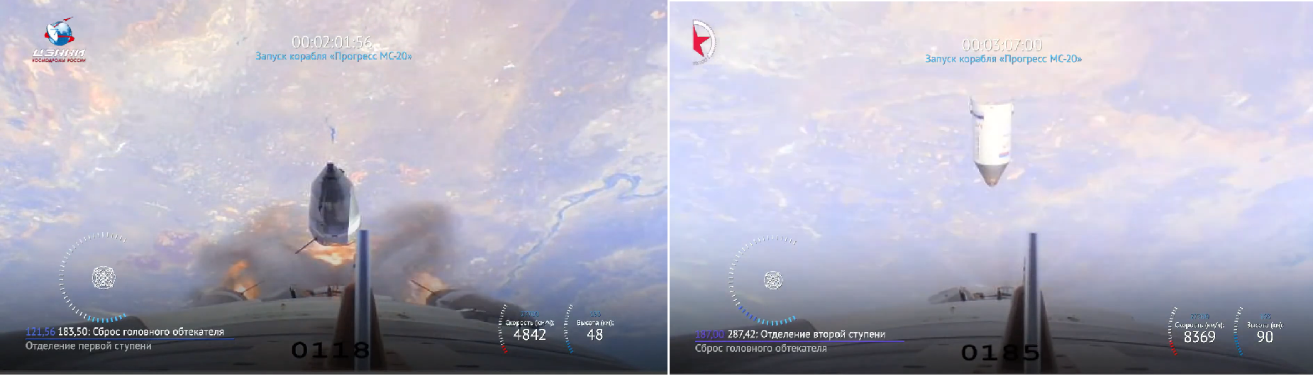 On Board Kamera - Links Separation 1.Stufe, rechts Separation Kopfverkleidung
