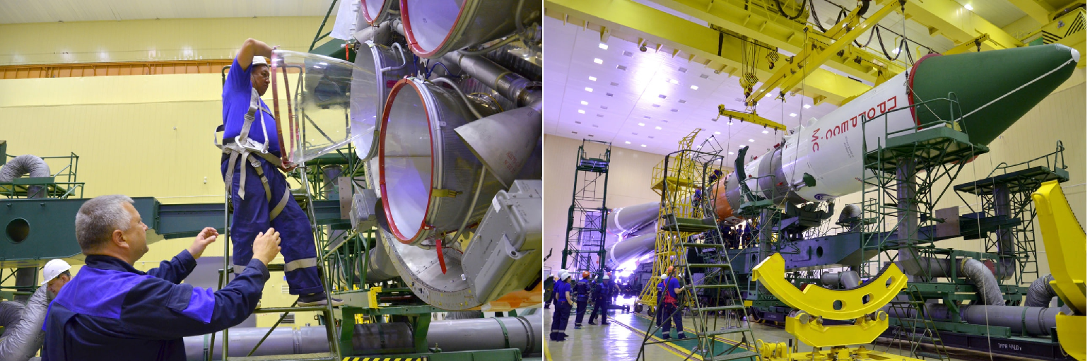 Für die Versorgungsmission Progress MS-23 wurde heute im MIK St.-Ort 31 in Baikonur der Sojus-Träger 1. und 2. Stufe montiert