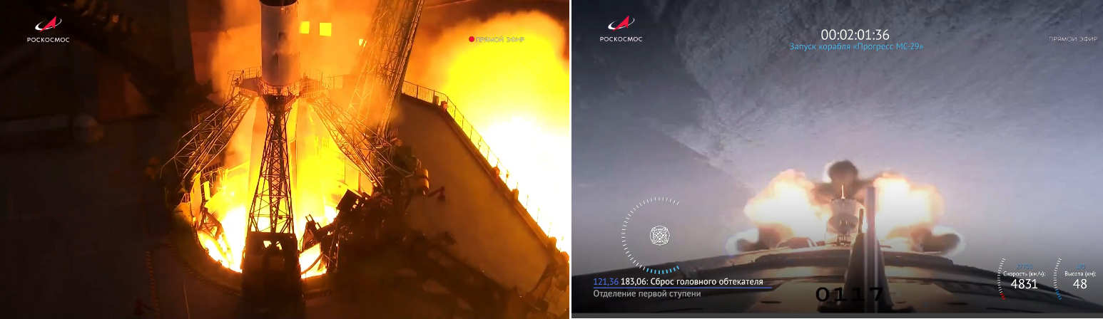 Die Trägerrakete Sojus-2.1a mit dem Frachtraumschiff Progress MS-29 hob problemlos ab.