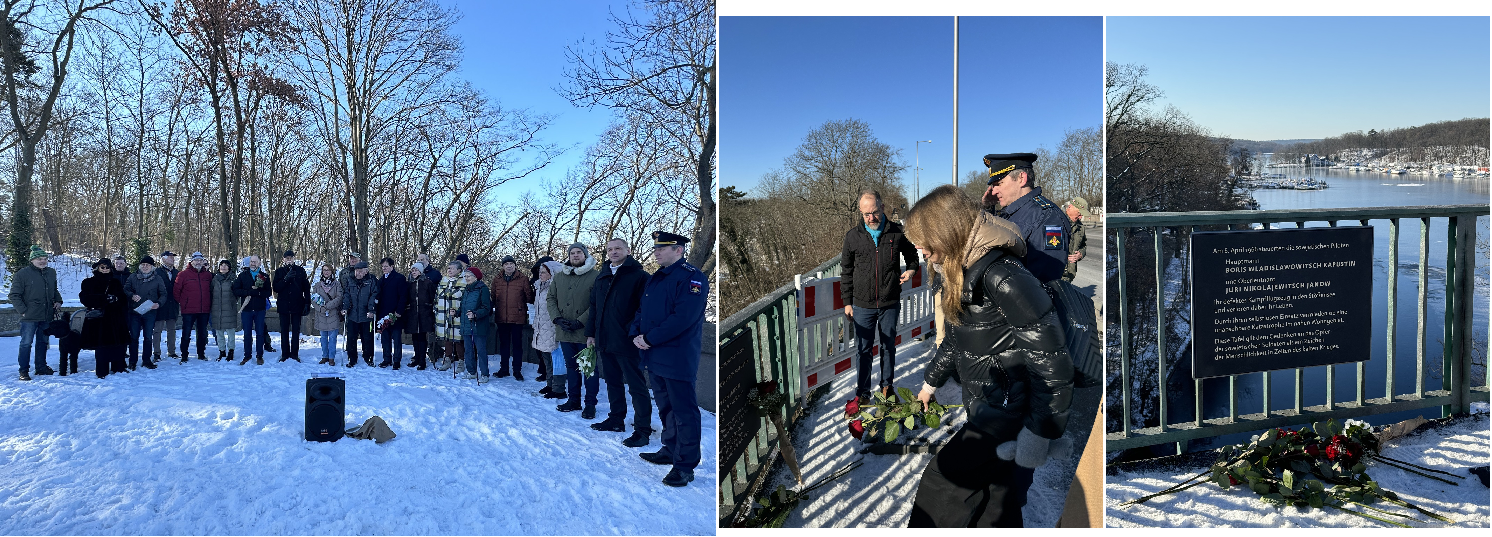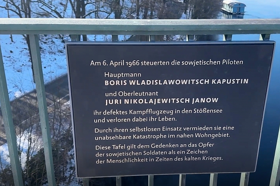 Im Berliner Bezirk Spandau fand eine Veranstaltung anlässlich der Enthüllung dieser neuen Gedenktafel statt die an die Heldentat der beiden sowjetischen Piloten Kapitän Boris Kapustin und Oberleutnant Juri Janow erinnert.