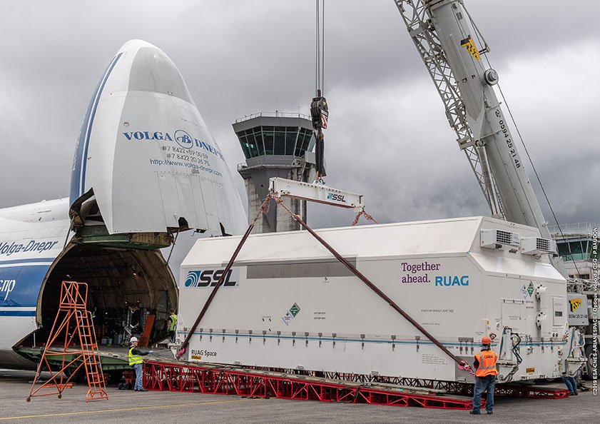 Alle Fotos: Фото пресс-службы Группы Компаний "Волга-Днепр" http://airline.volga-dnepr.com/media/pr ... ases/1515/ Gemeinsam mit dem langjährigen Partner Bolloré Logistics organisierten die Spezialisten den Transport der Satelliten vom Hersteller in Toulouse (FR) im Direktflug nach Cayenne (Französisch-Guayana).