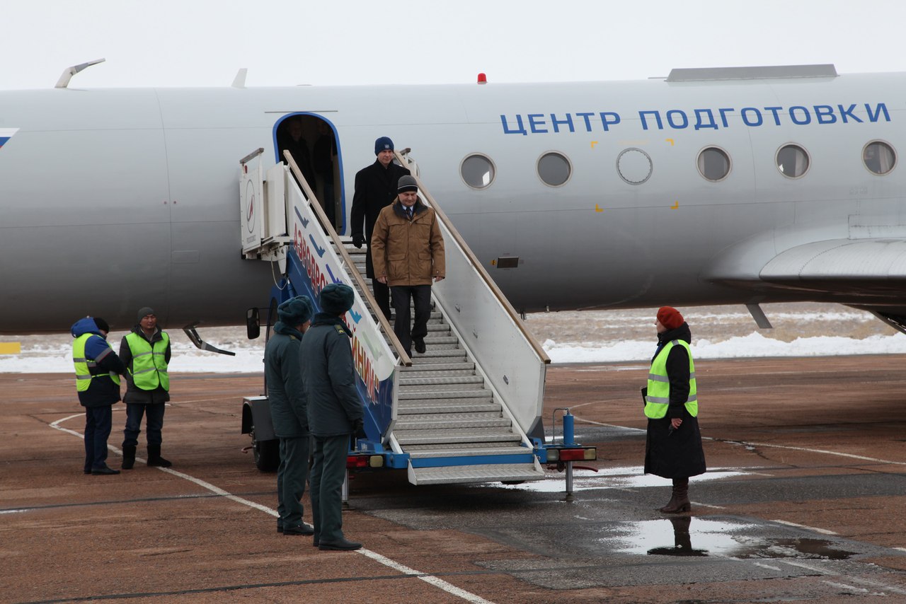 Nach 3 Stunden Flug über zwei Zeitzonen die Ankunft der ersten TU-134 des Kosmonauten-Ausbildungs-Centers in Baikonur: