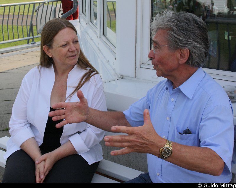 Als bekannt wurde, dass Flugkapitän a.D Kallbach zu Gast bei uns war, wurde ich gebeten, ihn auf den Tower zu bitten, damit ihn die Bürgermeisterin und der Flugleiter begrüßen können. Ich hab ihn ausfindig gemacht und musste dann mit ihm eine Strecke von ca. 30 Metern überwinden. Wir haben durschnittlich pro Meter 2 Minuten gebraucht, weil Herr Kallbach keinen Schritt machen konnte, ohne erkannt und begrüßt zu werden.