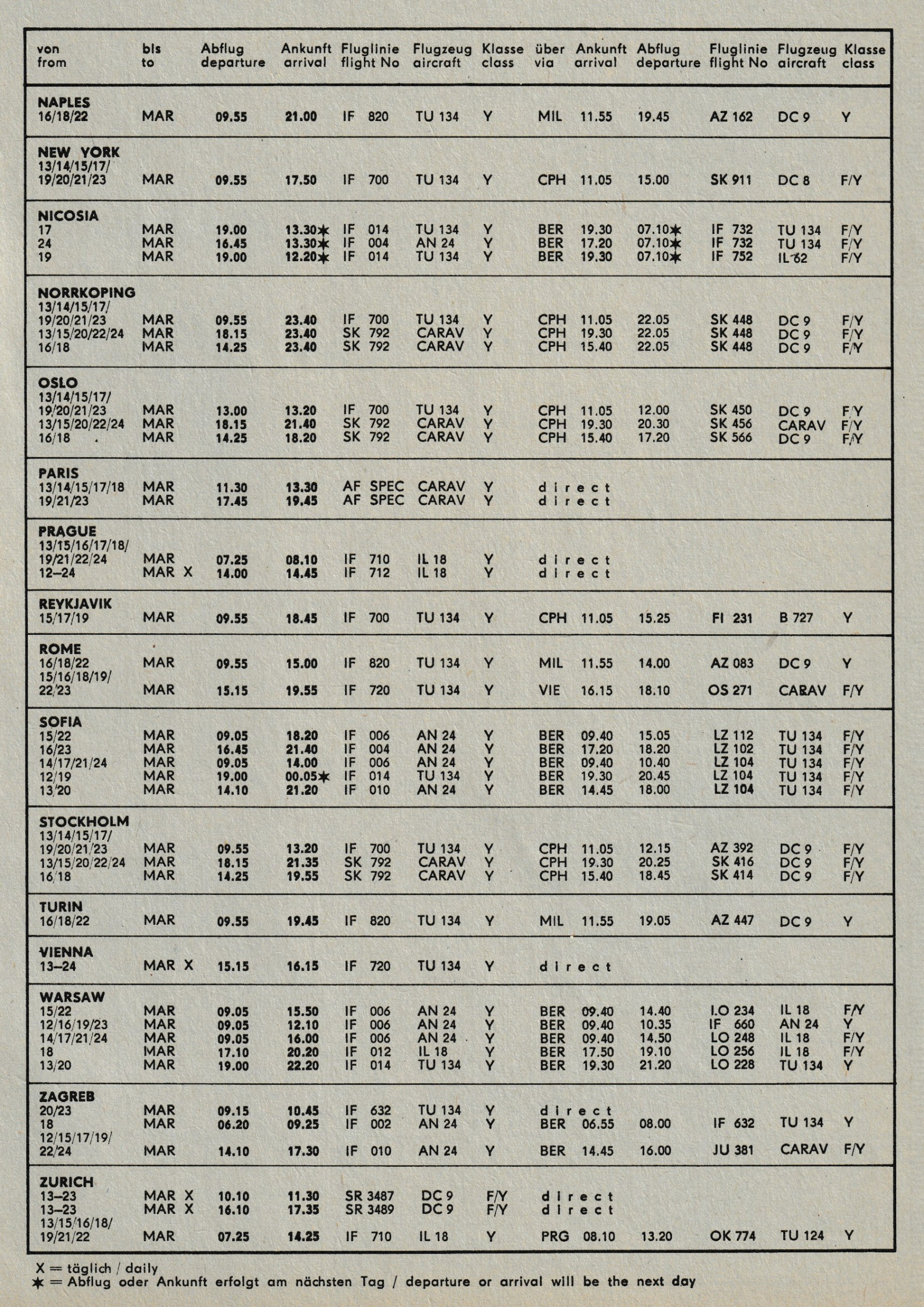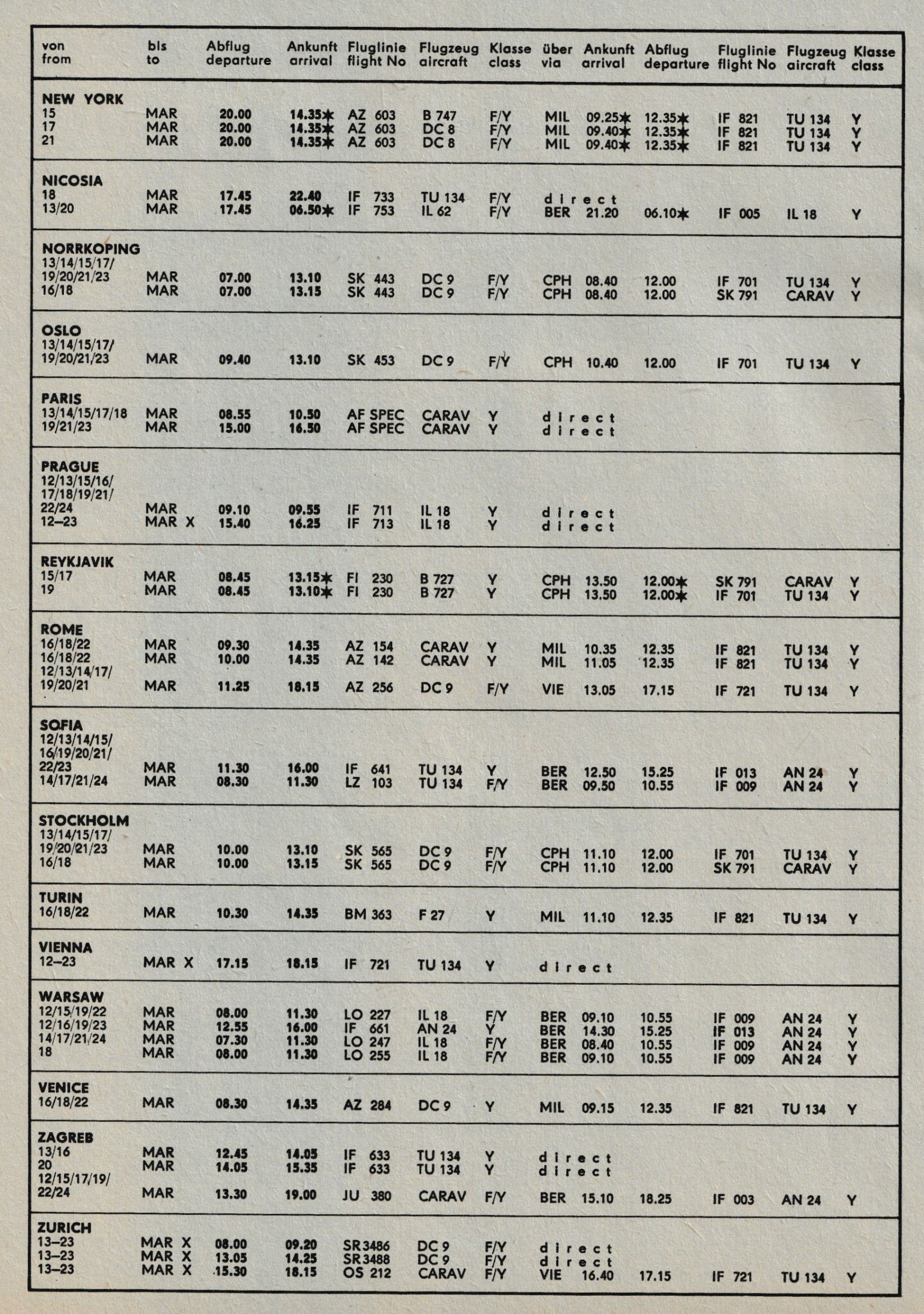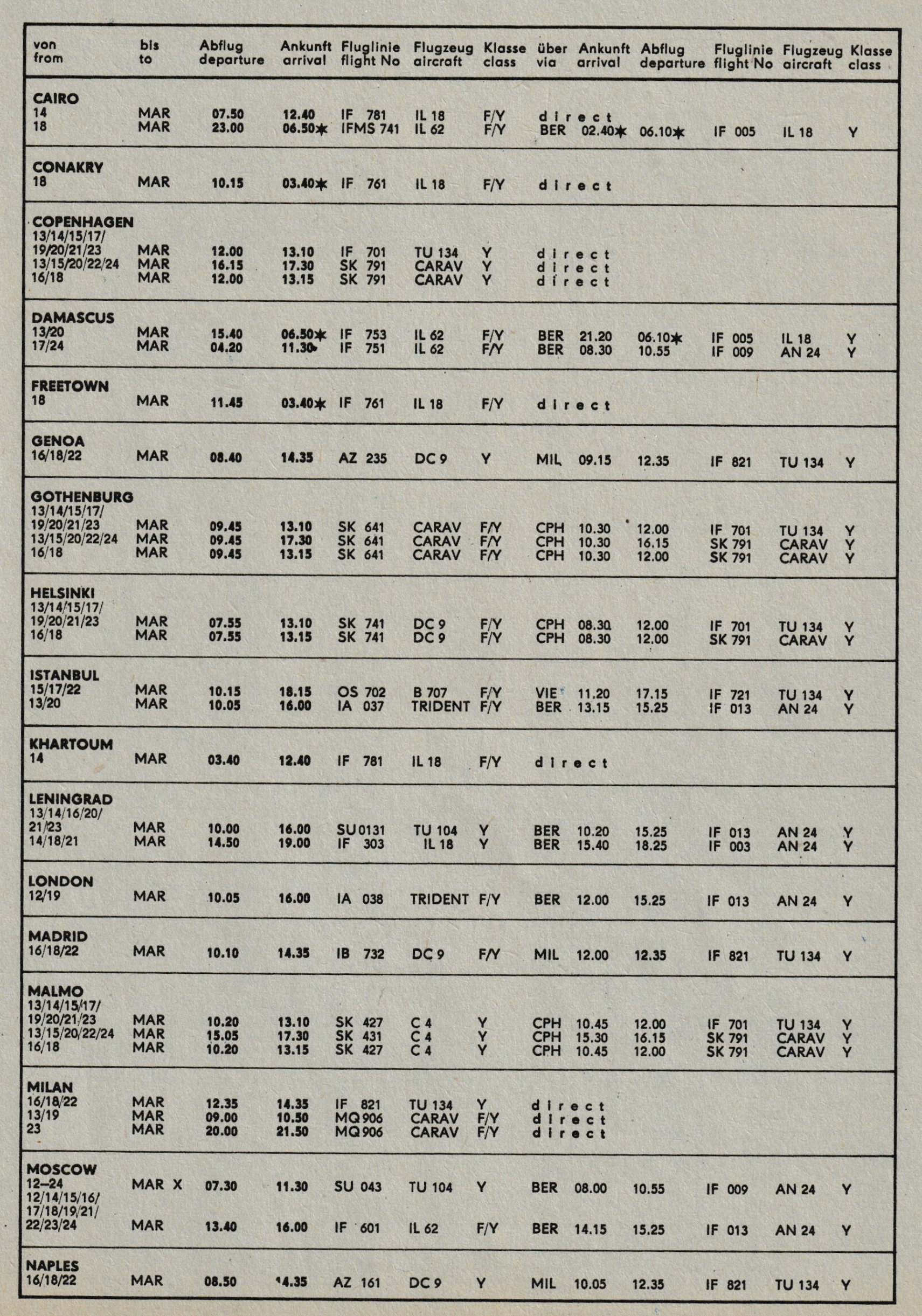 Also wenn ich den Messe- Flugplan aus dem Jahr 1971 richtig verstehe,